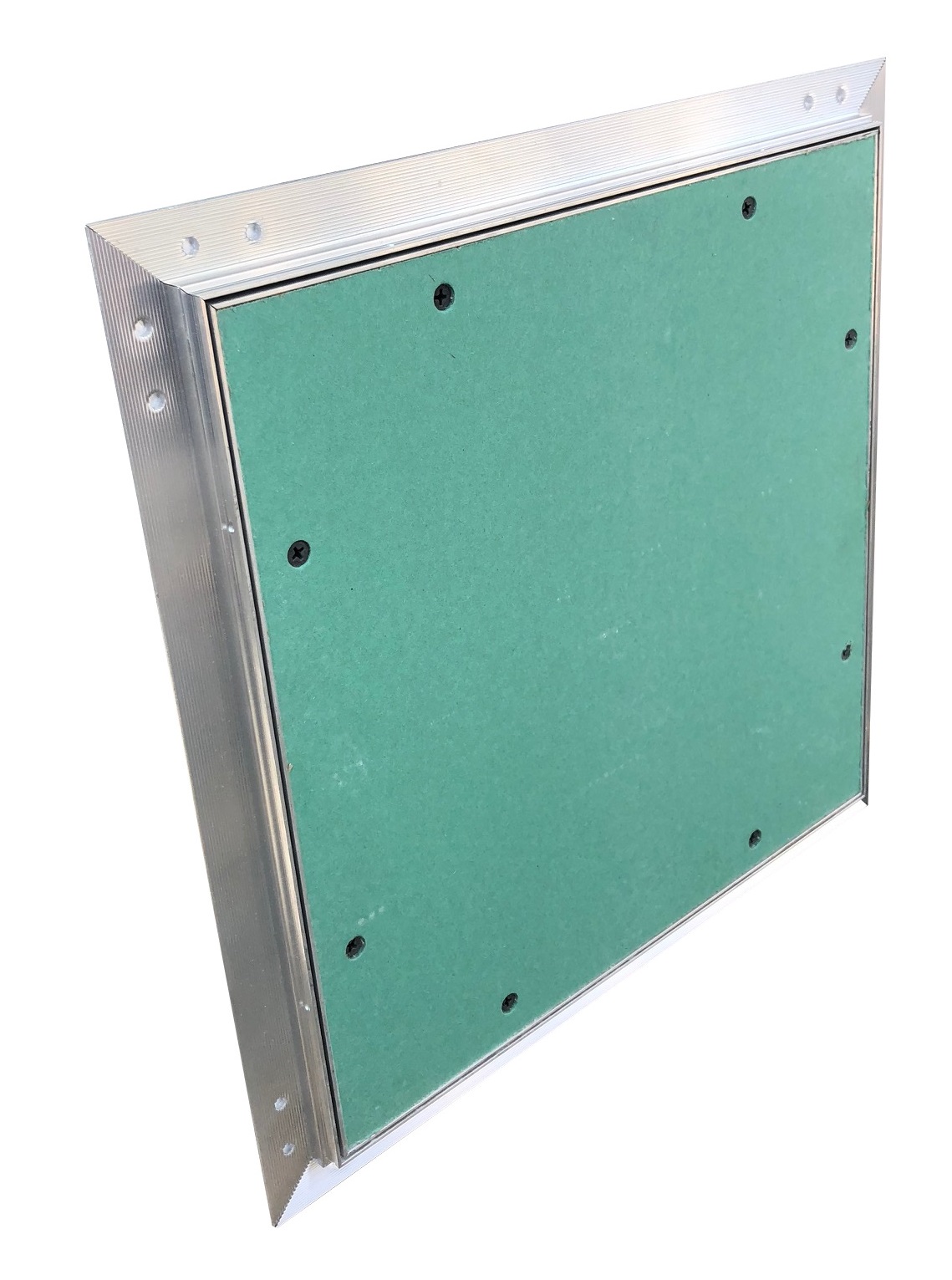 Revisionsklappen für den Trockenbau. Mit eingelegter GKBI Gipskartoneinlage können diese Revisionsklappen auch in Feuchträumen verwendet werden. Der Vorteil der Revisionsklappe liegt in der stabilen Ausführung des Rahmens und der Deckeleinfassung. Bei dieser Variante besteht die Möglichkeit die eingeschraubte GKBI Platte durch eine Lochplatte (zum Beispiel für eine Lochplattendecke) zu ersetzen. Dies ermöglicht eine Einsparung und einen Zeitvorteil. Durch die innenliegende Dichtung ist diese Variante Staub- und Luftdicht.