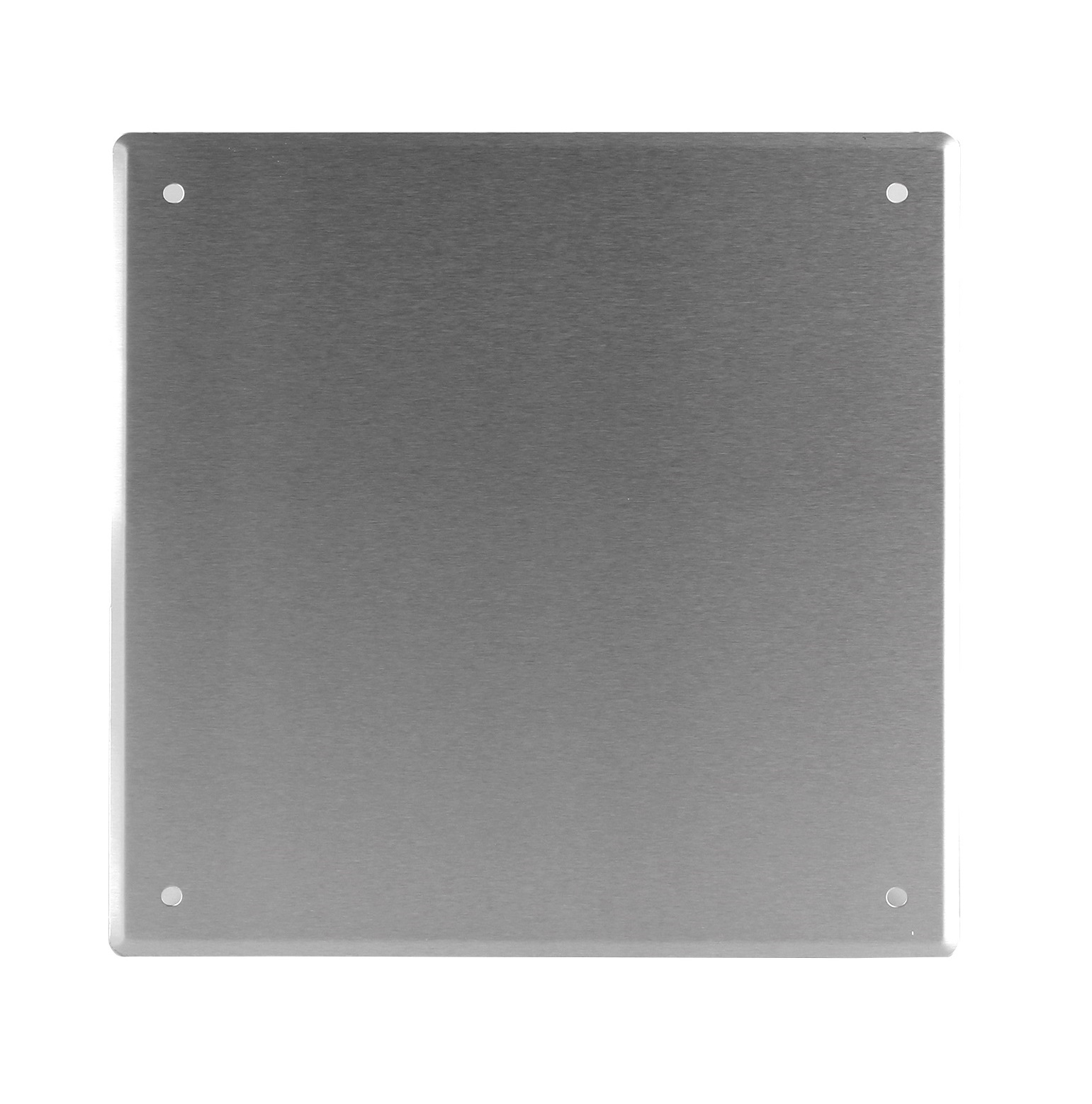 Abdeckblech aus Edelstahl mit einer gesofteten Kante zur optimalen Anpassung an die Wand/ Decke oder Fliese. Diese Variante ist ein Möglichkeit Öffnungen abzudecken um später bei Bedarf dennoch diese zu öffnen durch einfaches abschrauben. Die mitgelieferten Edelstahlschrauben und Dübel ermöglichen eine einfache Montage.