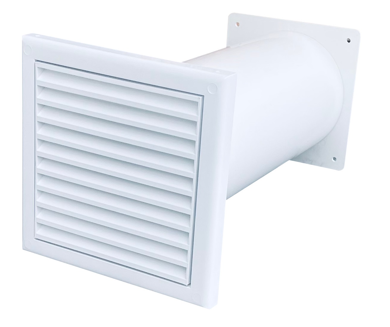 Teleskopkanal weiß Anschluss rund DN 125, incl. Edelstahlschrauben/Dübel (8)