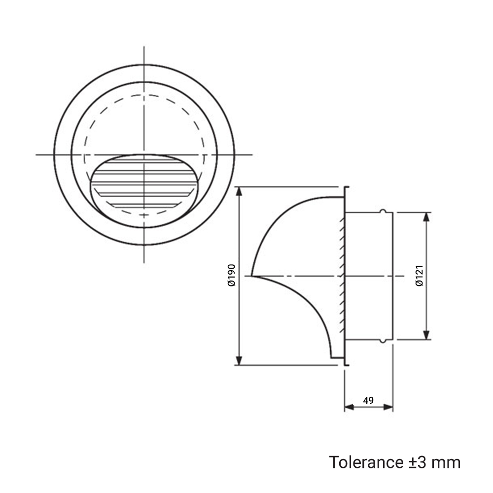 Luftkugel Edelstahl weiß mit Stutzen für Rohre DN 125