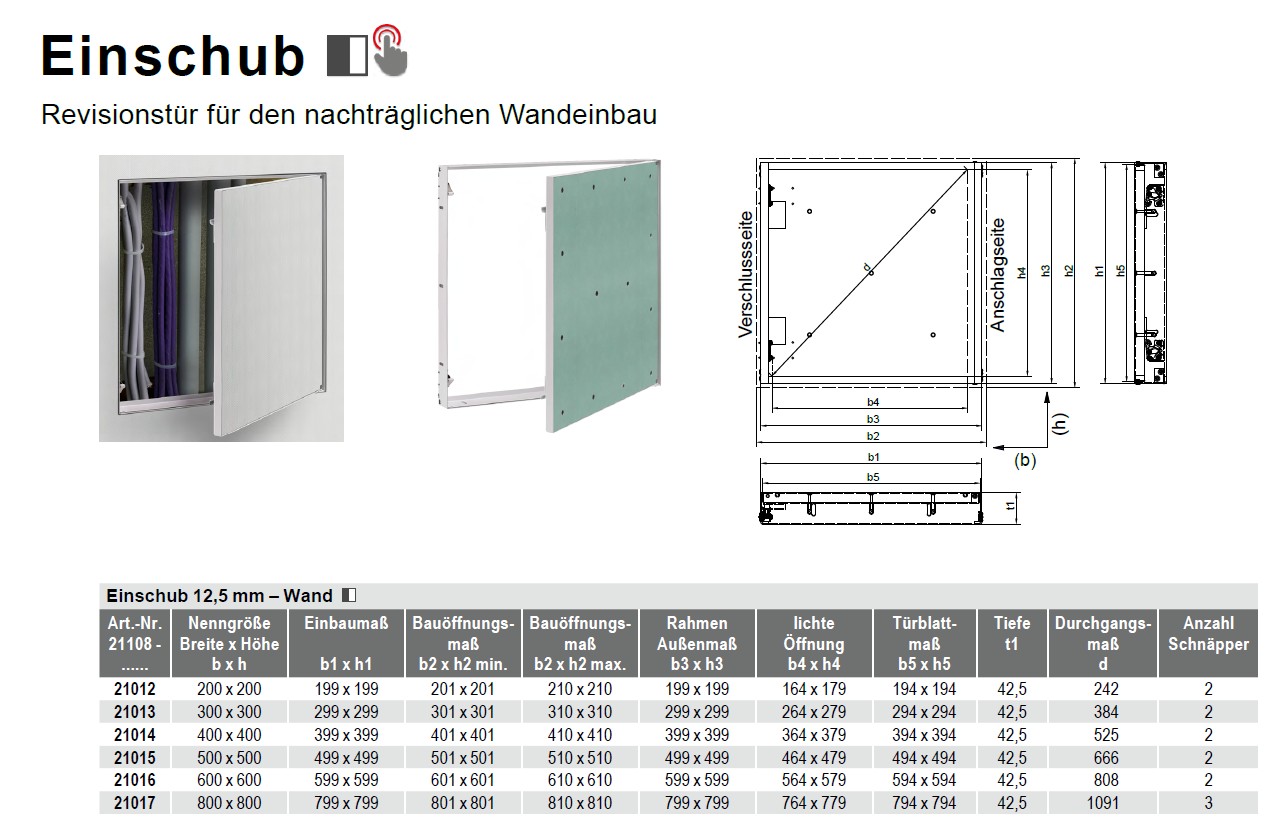 Mobile Preview: Datenblatt Einschubrevisionstür