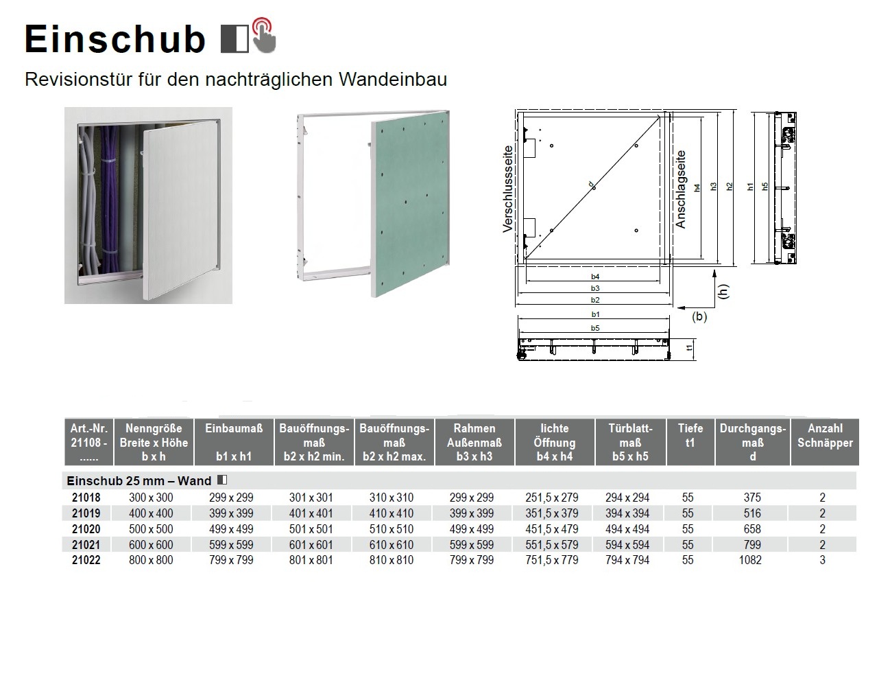 Ich suche eine Einschubrevisionstür in einem anderen Maß. Muss ich bei einer Wandstärke von 25mm auch die GK Einlage auf 25mm fertigen lassen?