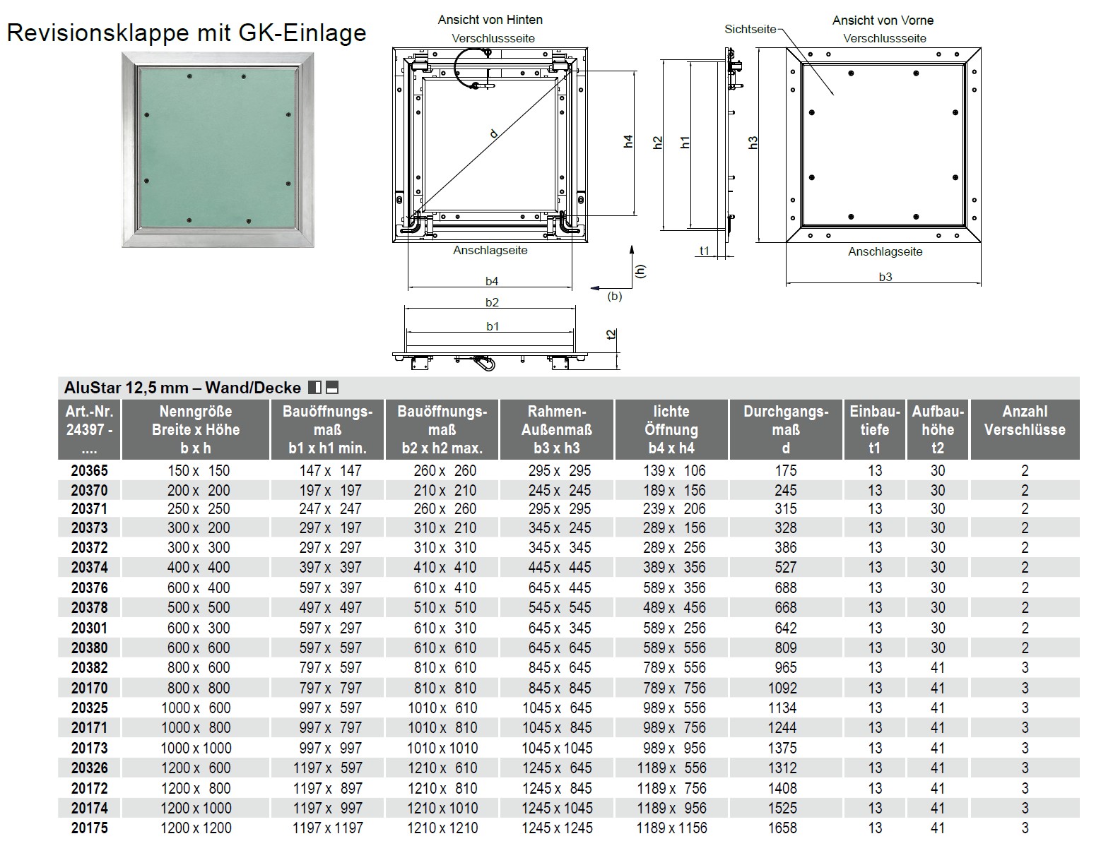 Sind diese Revisionsklappe auch in Massiven Wänden oder Decken einsetzbar?