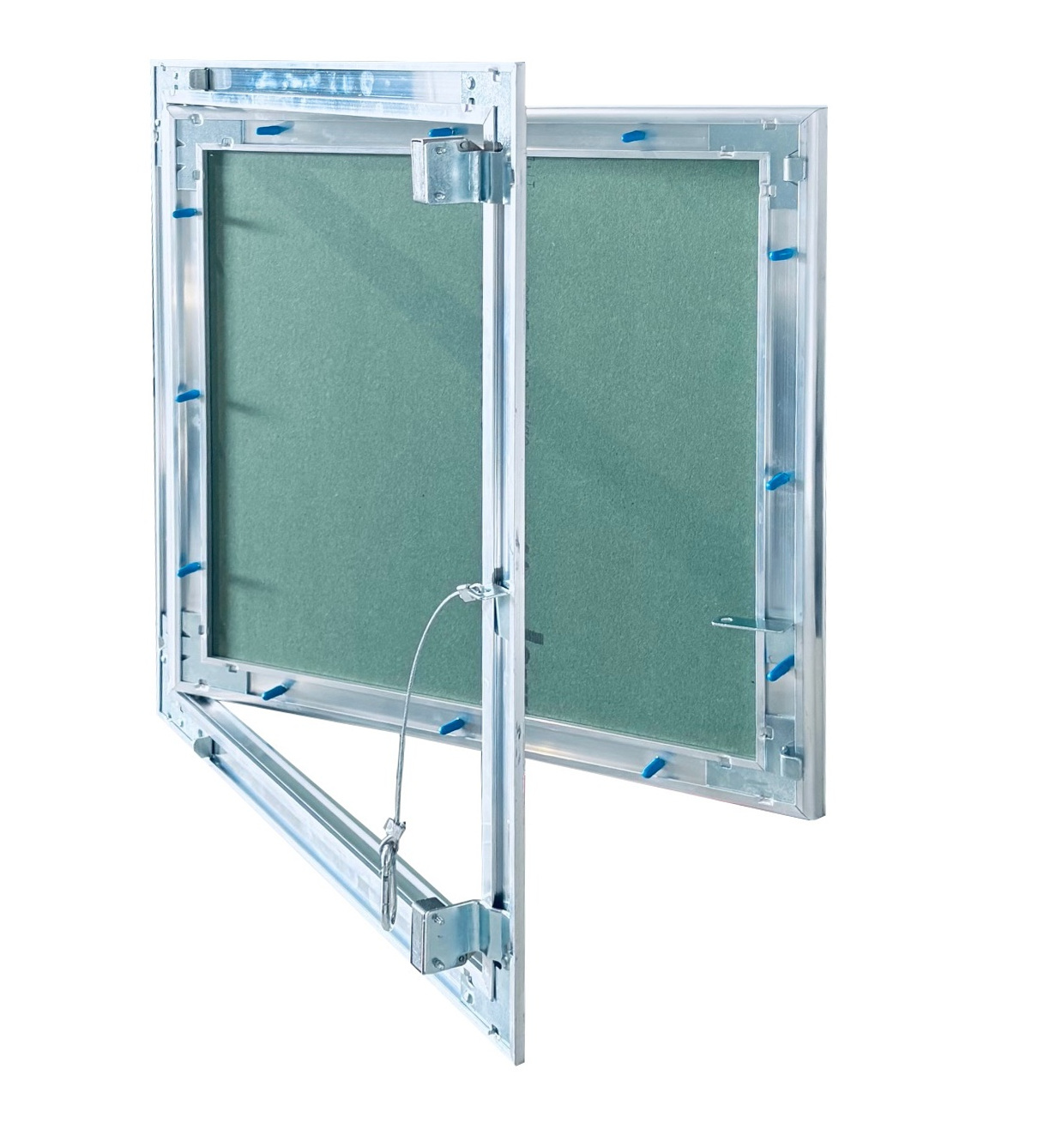 Revisionsklappe AluStar Fix 200 x 200mm, GKB-I Einlage 12,5mm, konzipiert für den Einbau in Trockenbaukonstruktionen in einer Beplankungsstärken von 12,5mm. Die Alu Star FIX hat einen starken Rahmen und eine ebenso starken GK- Aufnahmerahmen. Das Türblatt ist ist nicht aushängbar. So kann die AluStar Fix in der Wand wie eine "Tür" eingebaut werden, also links oder rechts anschlagend.