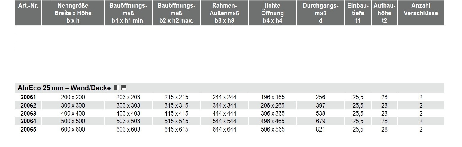 Revisionsklappe Alu-Eco 400 x 400 mm mit 25mm GKB-I Einlage geklebt, konzipiert für den Einbau in Trockenbaukonstruktionen mit einer Beplankungsstärke von 25mm. Der Einbau der Revisionsklappen ist im Wandbereich und Deckenbereich möglich. .