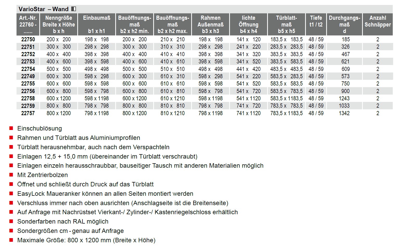 Revisionsklappe VarioStar 200 x 200mm, befliesbar