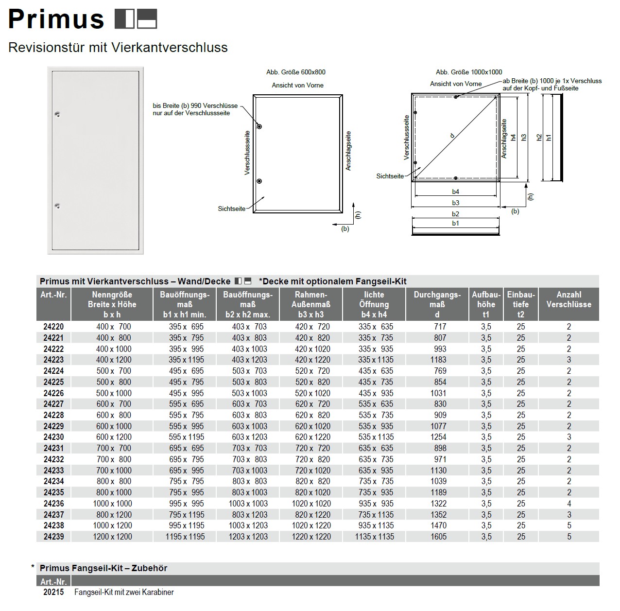Mobile Preview: Datenblatt Revisionstüren Primus