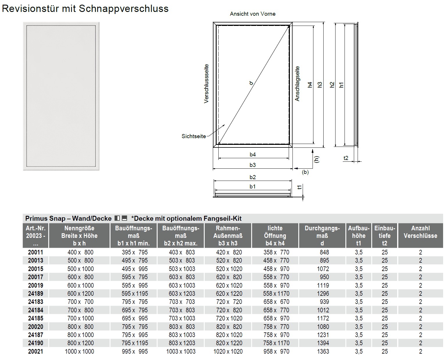 Mobile Preview: Datenblatt Revisionstüren Primus Schnappverschluss