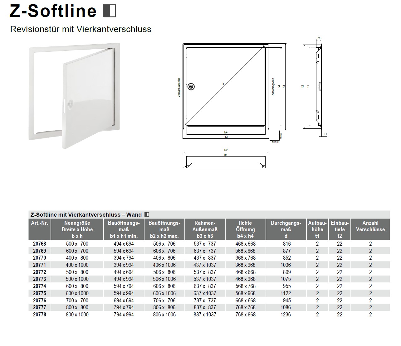 Revisionstür Softline Z- Profil weiß 400 x 1000mm mit Vierkantverschluss dient als Revisionsöffnungsverschluss um an zugängliche Bauteile zu gelangen. Die Revisionstür wird in einer Trockenbaukonstruktion in der Wand verwendet, aber es ist genauso möglich diese in einer Massivwand einzusetzen. Der Rahmen mit der Softkante bildet hier einen sanften Übergang zur angrenzenden Oberfläche.