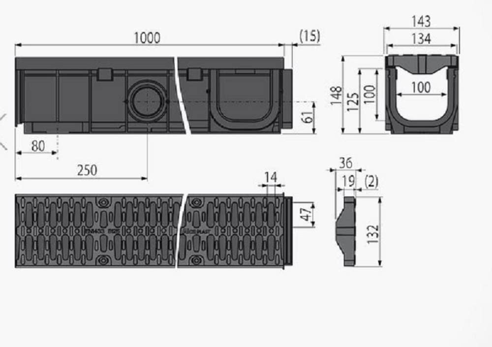 Entwässerungsrinne 1 Meter mit Kunststoffrost Gussdesign (rostfrei) LKW befahrbar Belastungsklasse C 250